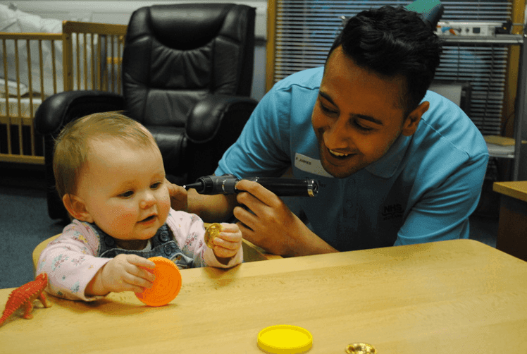 Used for infants and children (5–24 months). Measures hearing thresholds by observing responses to sound stimuli paired with visual cues (e.g., lighted boxes or moving toys).