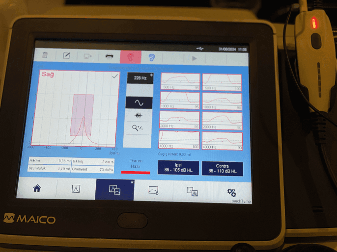 Helps identify middle ear issues, including ossicular chain movement disorders and Eustachian tube problems, by measuring reflexive responses in the middle ear.